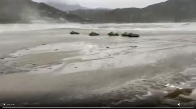 - Captures d’écran de la vidéo documentant le recul de la mer à Saint Florent à 09h32 le 18 août 2022 (Plage de la Roya) (Source : Facebook).