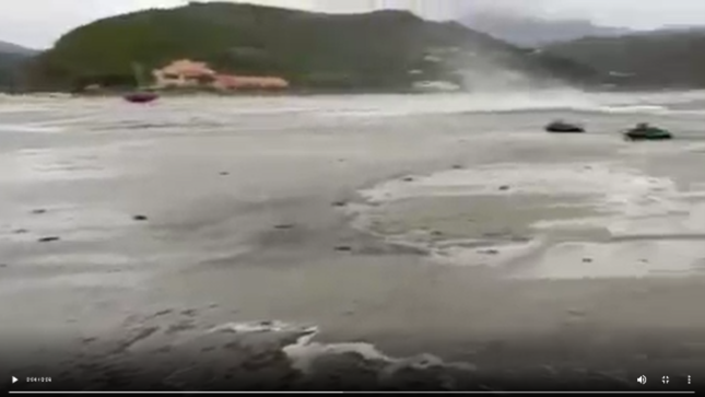 En revanche, les variations de pression atmosphérique ont entrainé des phénomènes de surcote-décote de plusieurs dizaines de centimètres à l’ouest de la Corse (marégraphes d’Ajaccio et d’île Rousse). A Saint-Florent, la configuration géomorphologique du golfe est probablement responsable de l’amplification de ces variations de niveaux d’eau (estimées jusqu’à 1 m) qui ont généré un important retrait de la mer sur la plage de la Roya ainsi que de forts courants (4-5 nœuds) avec d’importants dégâts sur les bateaux et dans le port.