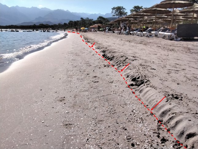 Les visites de terrain réalisées sur la côte basse meuble de la Plaine orientale à l’est de la Corse, particulièrement exposée aux aléas côtiers (site de Moriani-Plage sur la commune de San-Nicolao, plage de Santa-Lucia-di-Moriani, site de Pineto sur la commune de Lucciana) n’ont pas mis en évidence de trace d’érosion côtière sur ces plages qui présentaient les morphologies d’été classiques des vagues de beau temps. En revanche, quelques traces d’érosion marine (falaise d’érosion de 5 cm à 1 m très localement) ont été constatées sur les plages de poche de la côte ouest (Sagone, Calvi, Aregno et l’Ostriconi) mais aucun phénomène majeur d’érosion côtière. Les prochains suivis permettront de vérifier la récupération naturelle de ces pertes de sable.