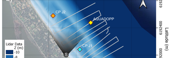 - des mesures topo-bathymétriques en début et fin de la campagne afin de positionner les instruments et de suivre les évolutions géomorphologiques.